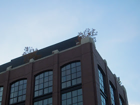 From 1973 to 1997, Arlington County acreage with heavy tree cover fell from 36% to 21%.  Rosslyn, with her many majestic buildings, is stepping up to support trees.  For example, Rosslyn's River Place Apartments has a beautiful array of trees on the roof of its building closest to the Potomac River.  A resident told the Ode Street Tribune that about a decade ago buildup of leaves in a drain on the roof caused a leak into his apartment.  Having to rake leaves on your roof is a minor inconvenience compared to the beauty of trees.