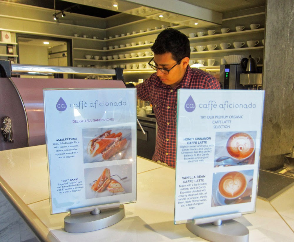 Cafe aficionado offers a wide range of organic coffee drinks. It also offers sandwiches and deserts. Among the more exotic offerings are Eritrean tea, fruit granita, and leige waffles. Hours are Monday through Friday, 7am to 6pm, and Saturday, 8am to 3pm. Cafe aficionado would be an excellent stop for a Saturday morning stroll about Rosslyn.
